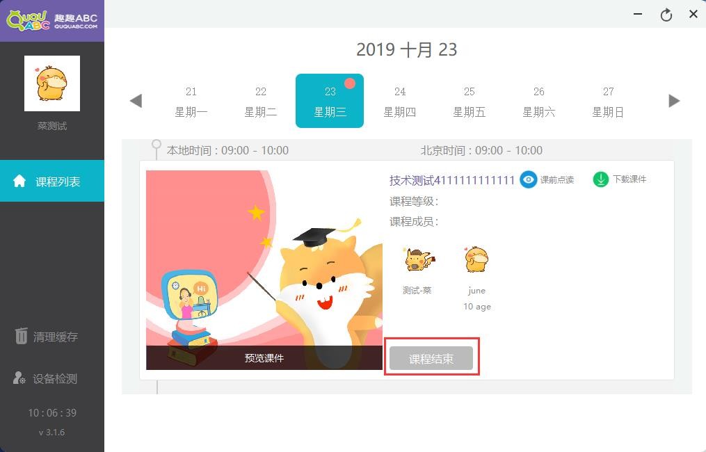 課程已結束:課程正點結束后,學生點擊“學生通道”,會提示“課程已結束”。