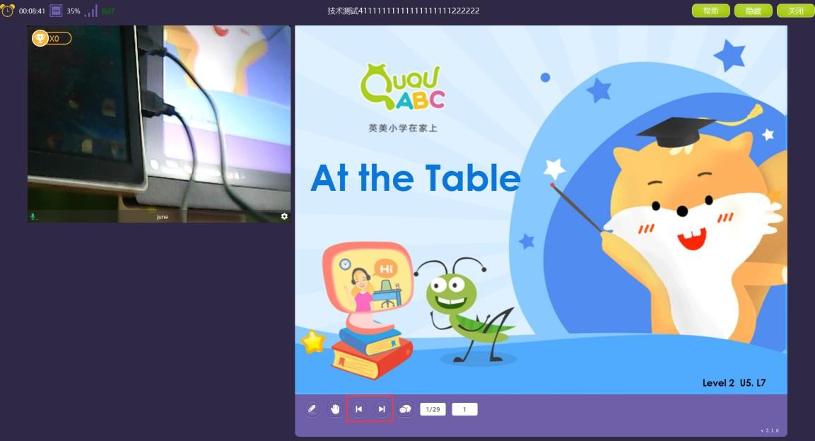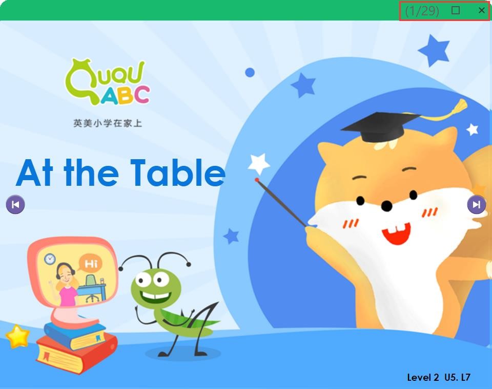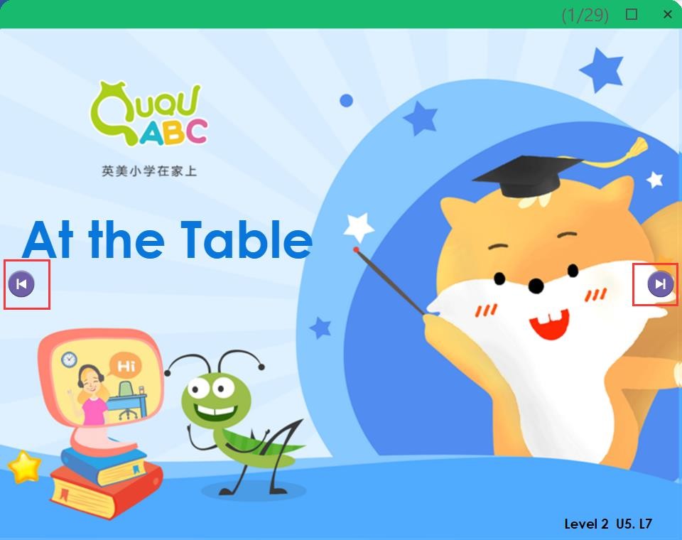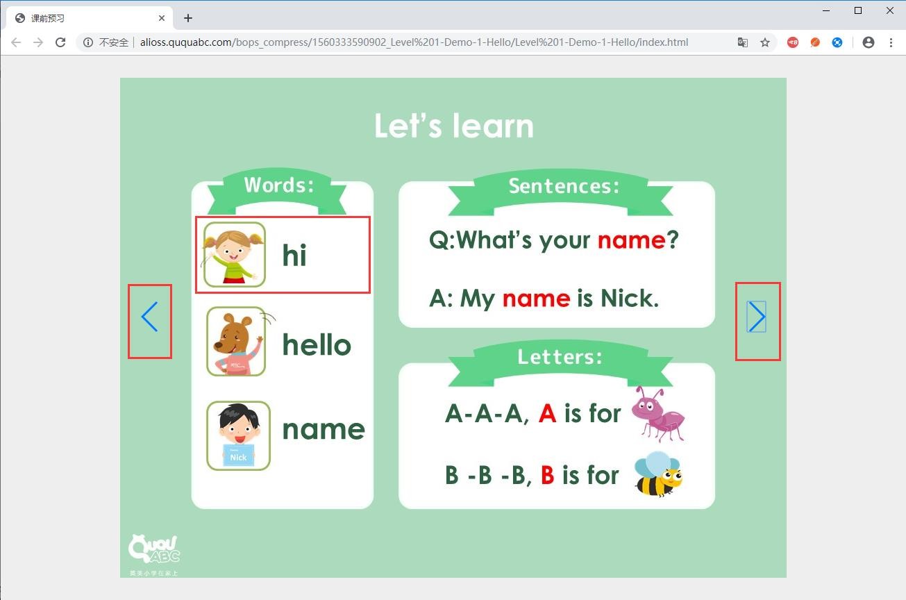 2.單擊“<”,“>”按鈕,可對點讀文件進行翻頁;選擇點讀頁上的單詞,當出現小手時,進行點擊,可以觸發單詞拼讀;課前點讀完成,關閉退出瀏覽器即可。