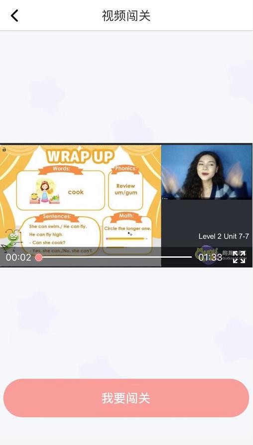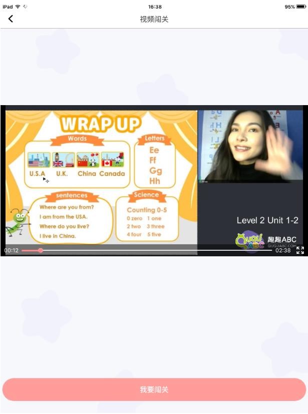 1.點擊我要闖關,觸發闖關視頻錄制,學生跟著視頻進行跟讀;