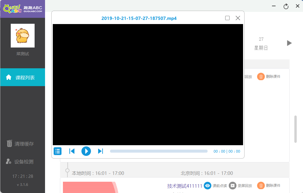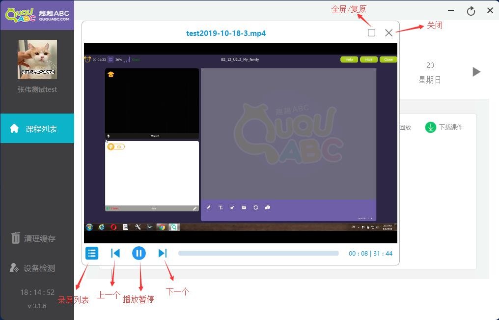 - 課程列表界面,單擊“錄屏回放”按鈕,打開錄屏播放界面,如圖;