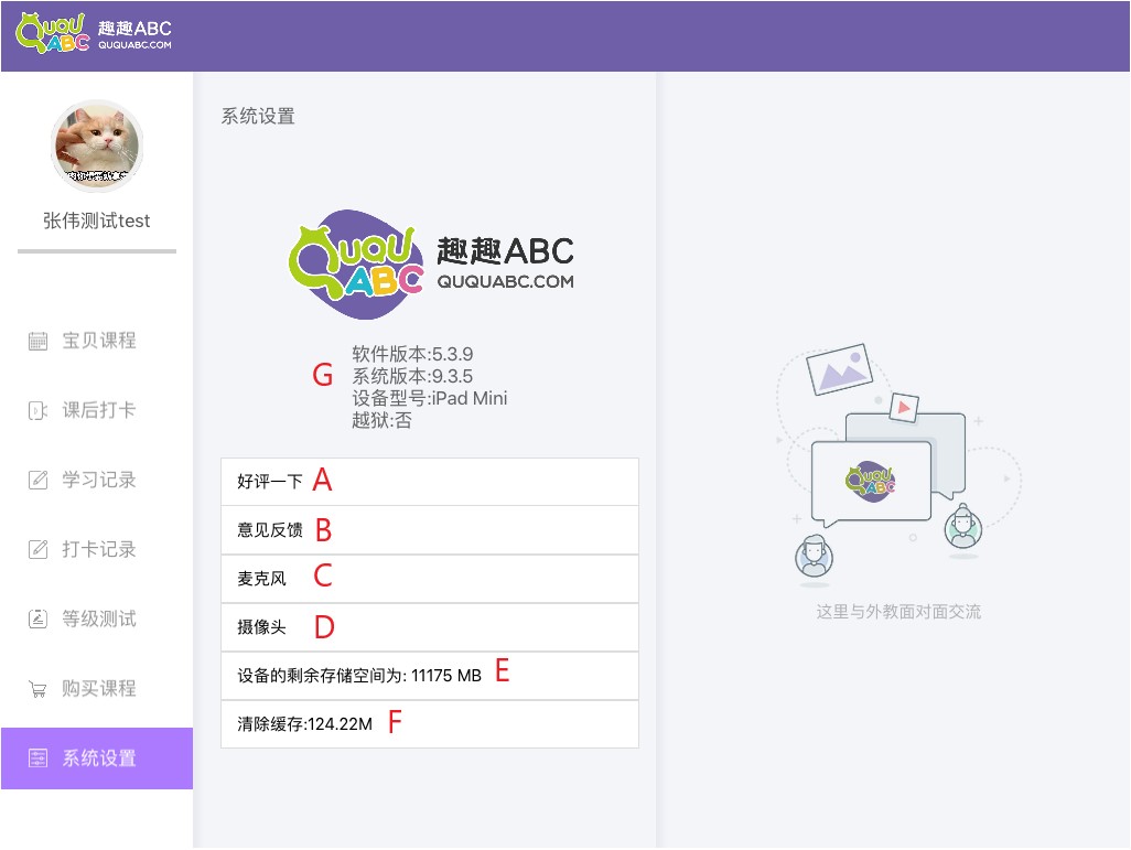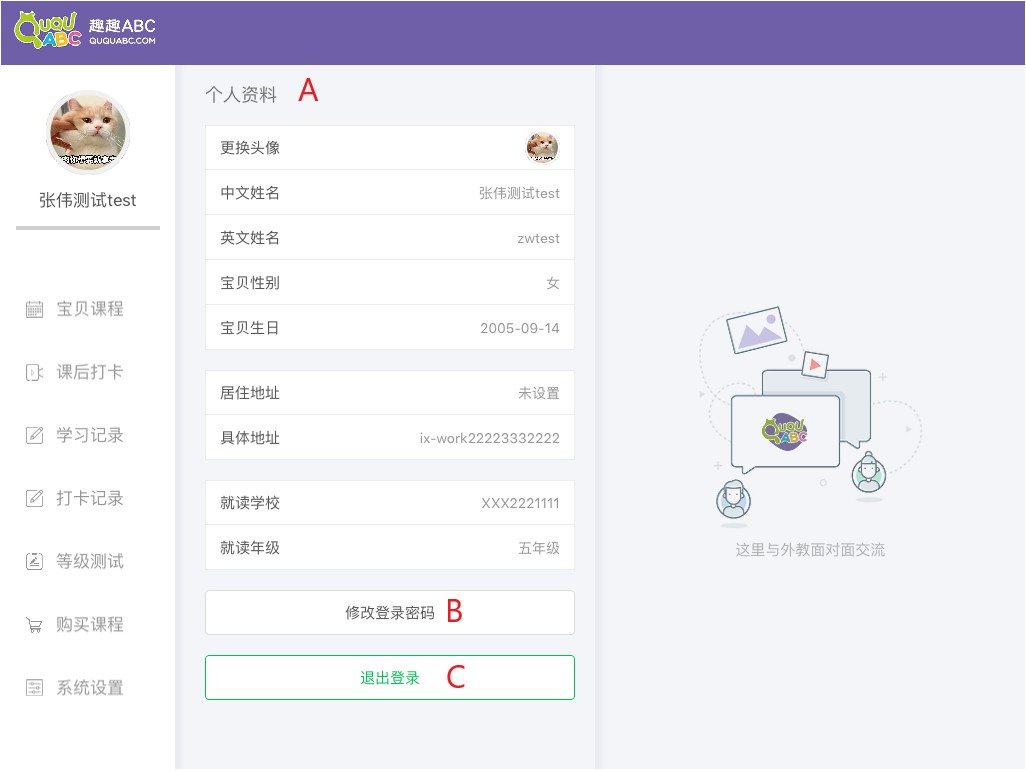 C:退出登錄,點擊退出登錄按鈕,可以退出趣趣 ABC 客戶端。