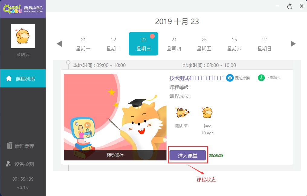 課程未開始:學生課提前 15 分鐘進入教室,早于這個時間,學生點擊學生通道,則提示“課程未開始”。
